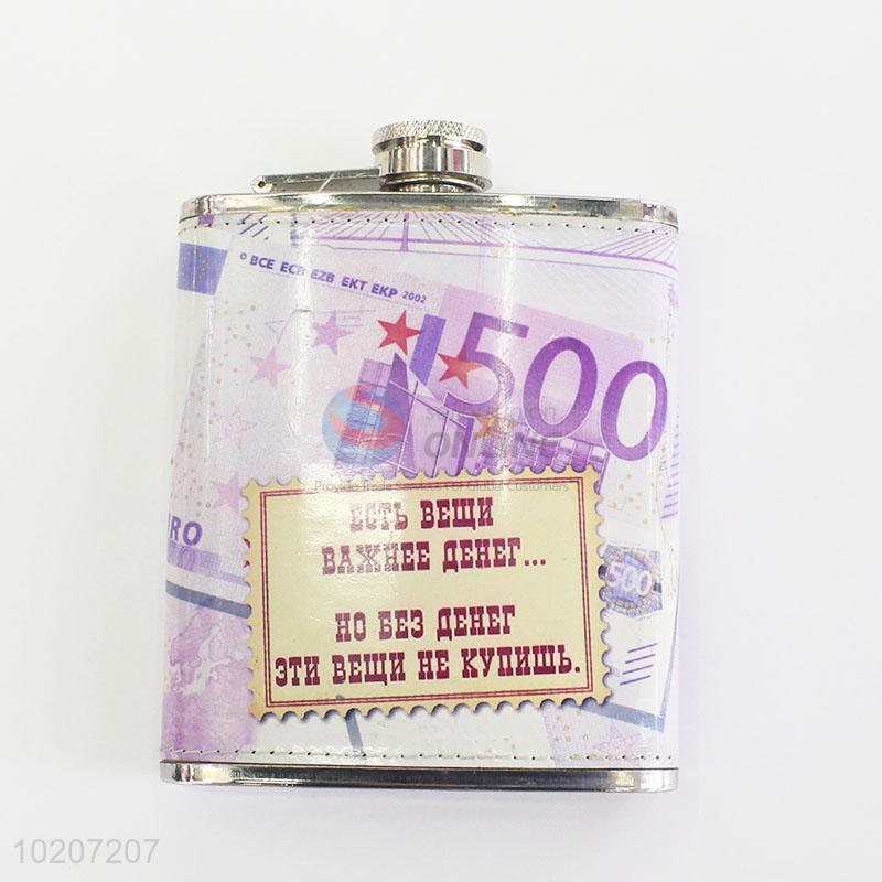 Fashion Money Pattern Stainless Steel Plastic Hip Flask