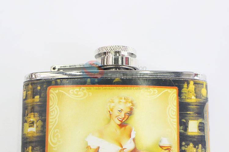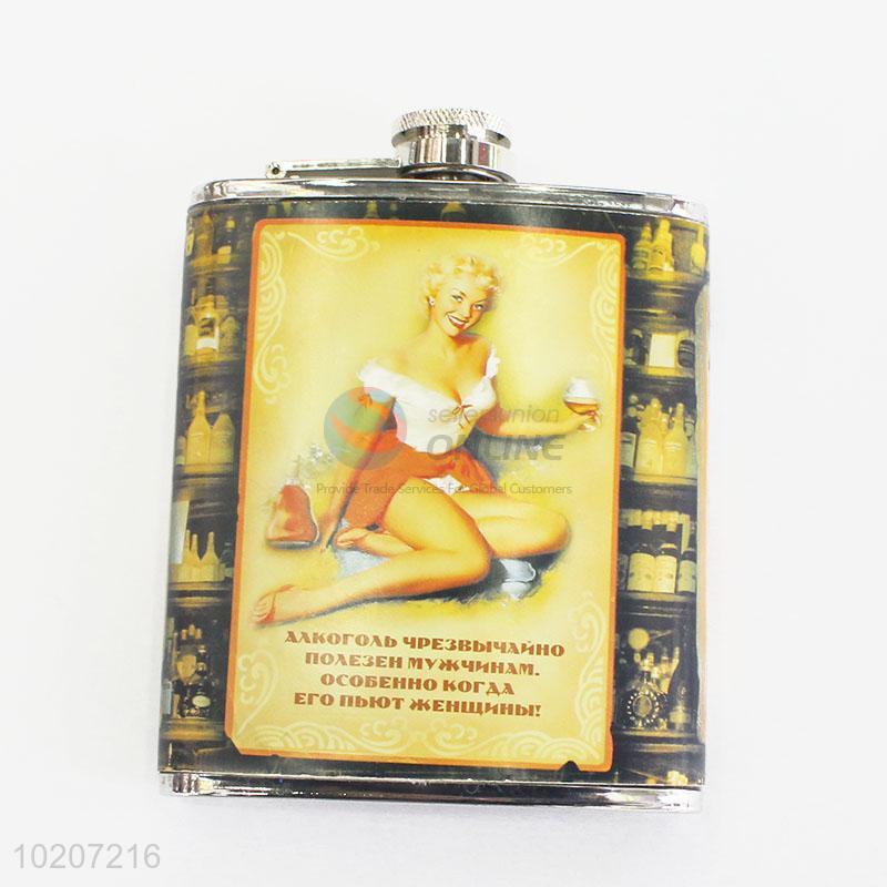 Eco-friendly Lady Printed Stainless Steel Plastic Mini Design Hip Flask