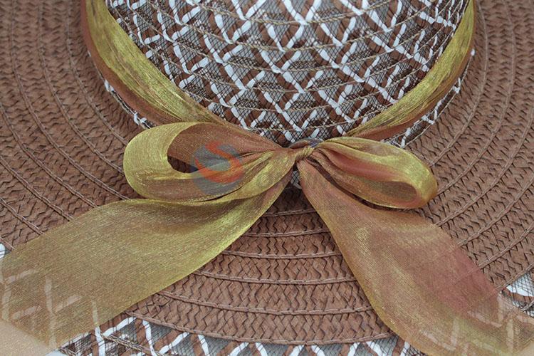 Factory Price Golden Bowknot Ribbon Women's Beach Cap Sun Hat