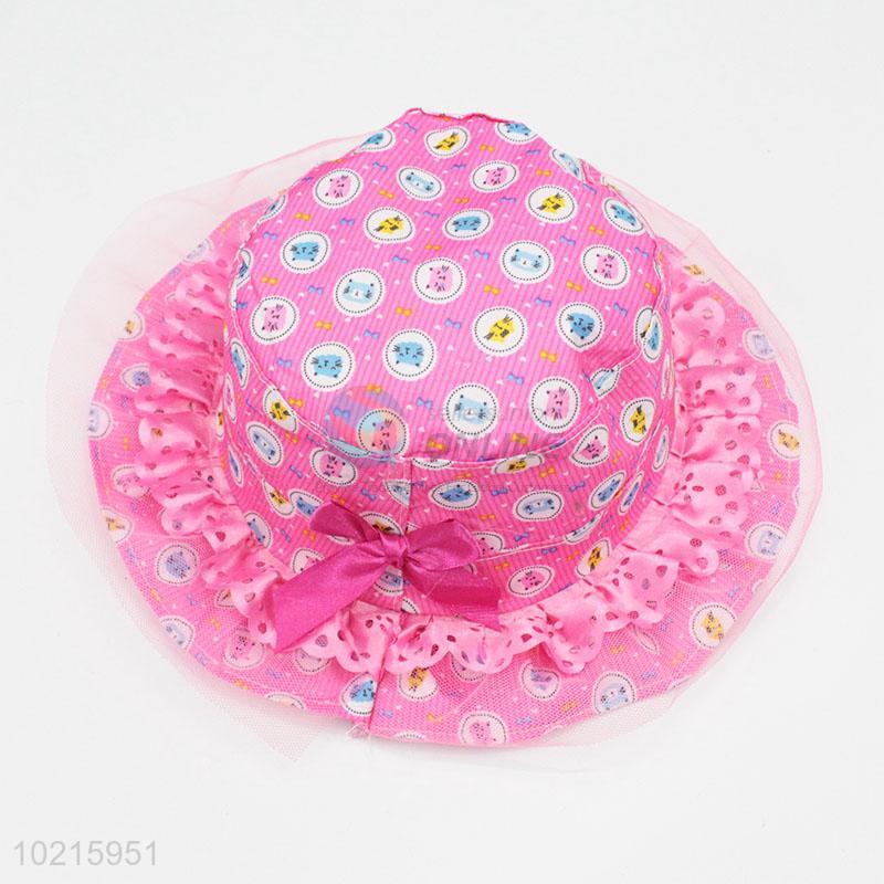 Fashion Style Lace Side Bowknot Decoration Cartoon Pritned Sun Hat