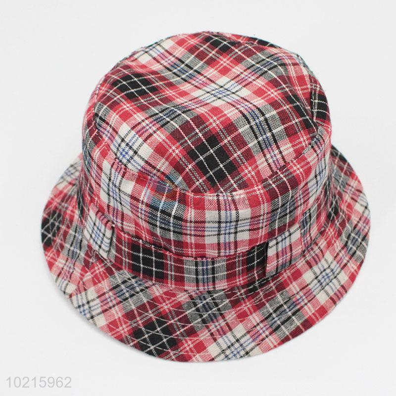 New Product Brown Color Vintage Plaid Printed Bowknot Ribbon Sun Hat