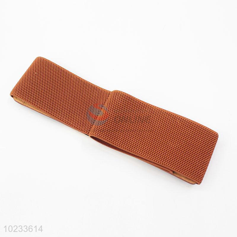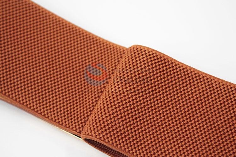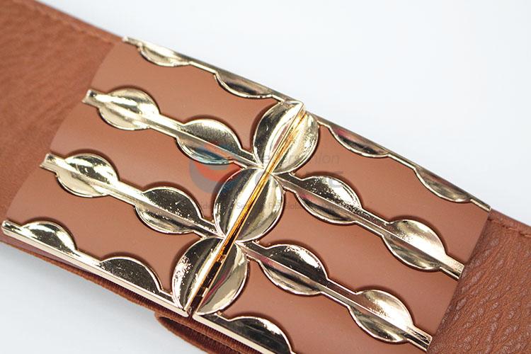Brown PU Leather Women Elastic Woven Belt