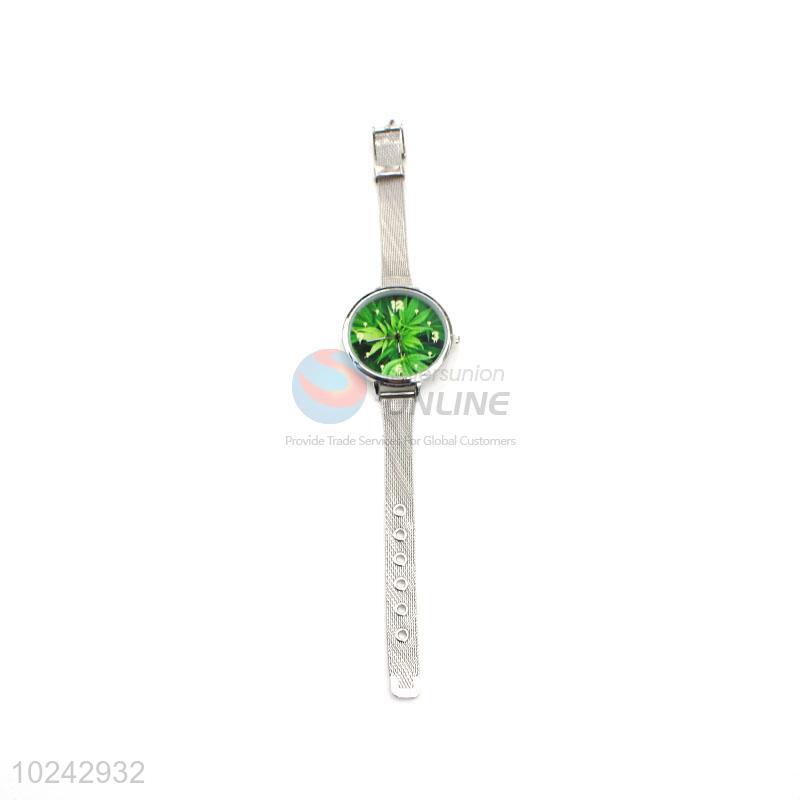 Beautiful Green Wrist Watch with Steel Watchband for Sale