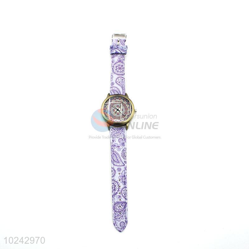 Wholesale Purple Wrist Watch with Leathern Watchband for Sale