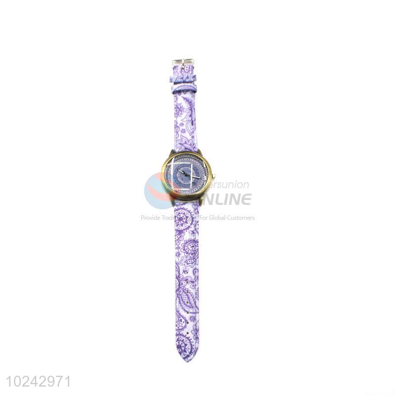 Fashionable Purple Wrist Watch with Leathern Watchband for Sale