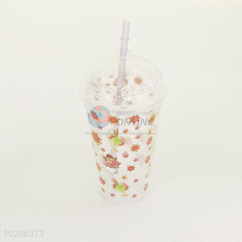 Flower Pattern Plastic Creative Fruit Juice for Summer Water Bottles Ice Plastic Cup with Straw