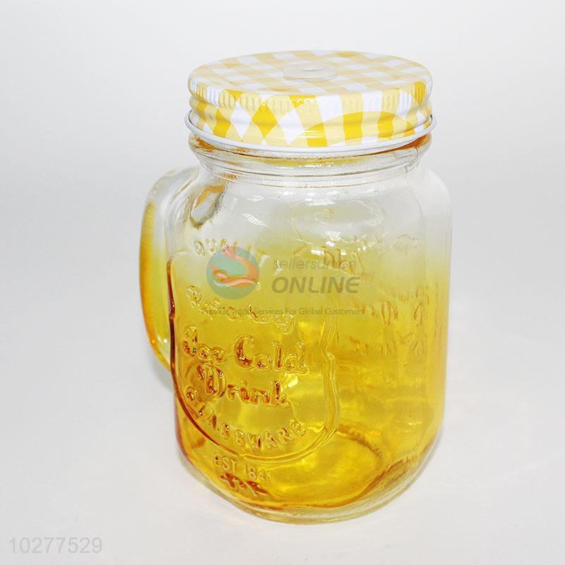 Yellow glass cup with grid cover
