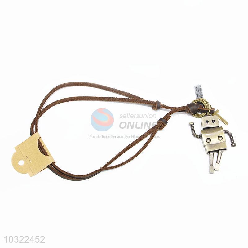 Fashion Style Cowhide Sweater Necklace with Robot Pendant