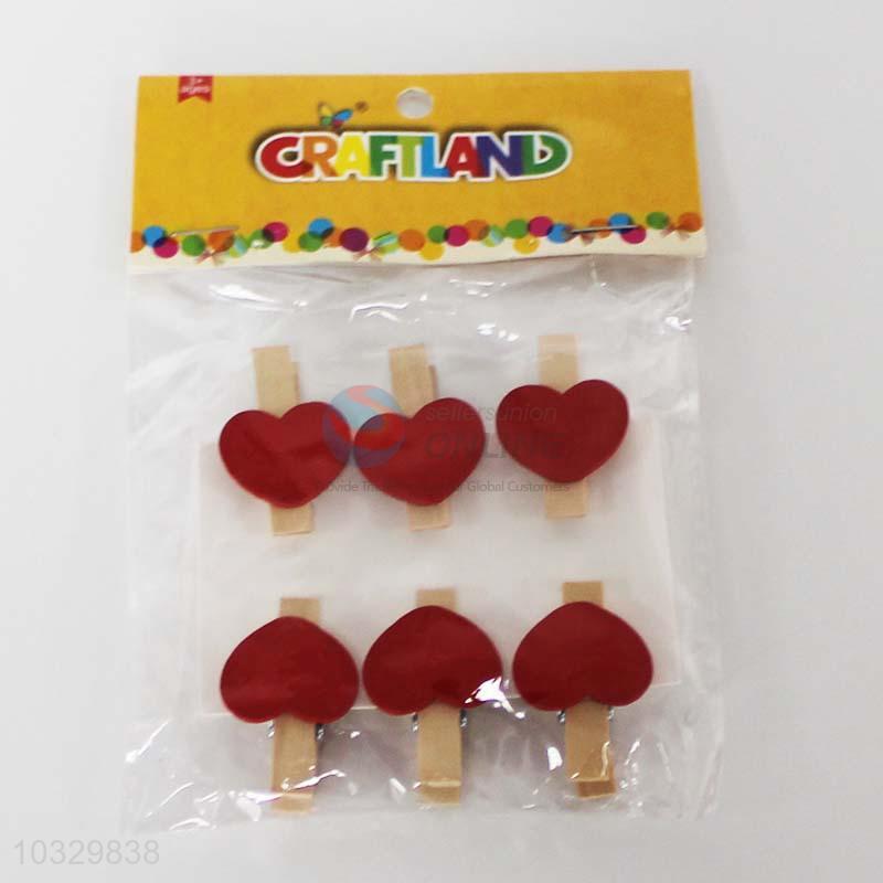 6PC Heart Shaped Wooden Clips Photo Holder