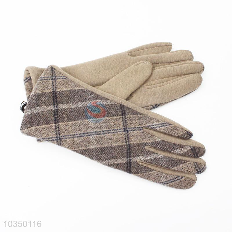 Delicate design good quality women winter warm plaid gloves
