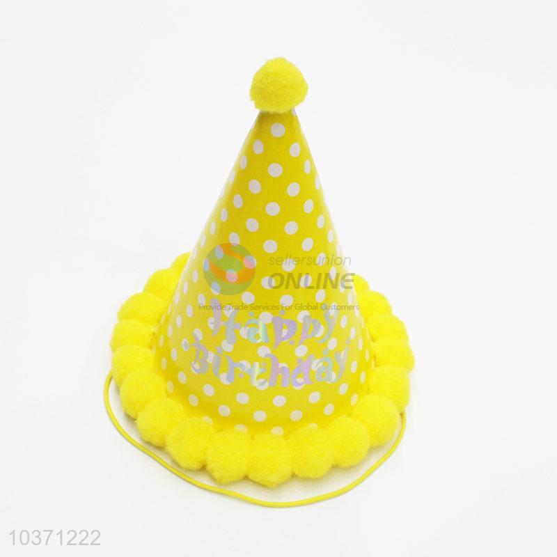 Popular style cheap yellow birthday use hat with white dots