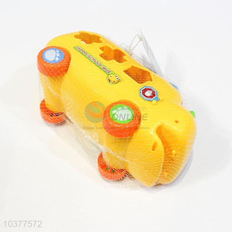 Cute Design Cartoon Hippo Early Education Building Blocks Toys School Bus