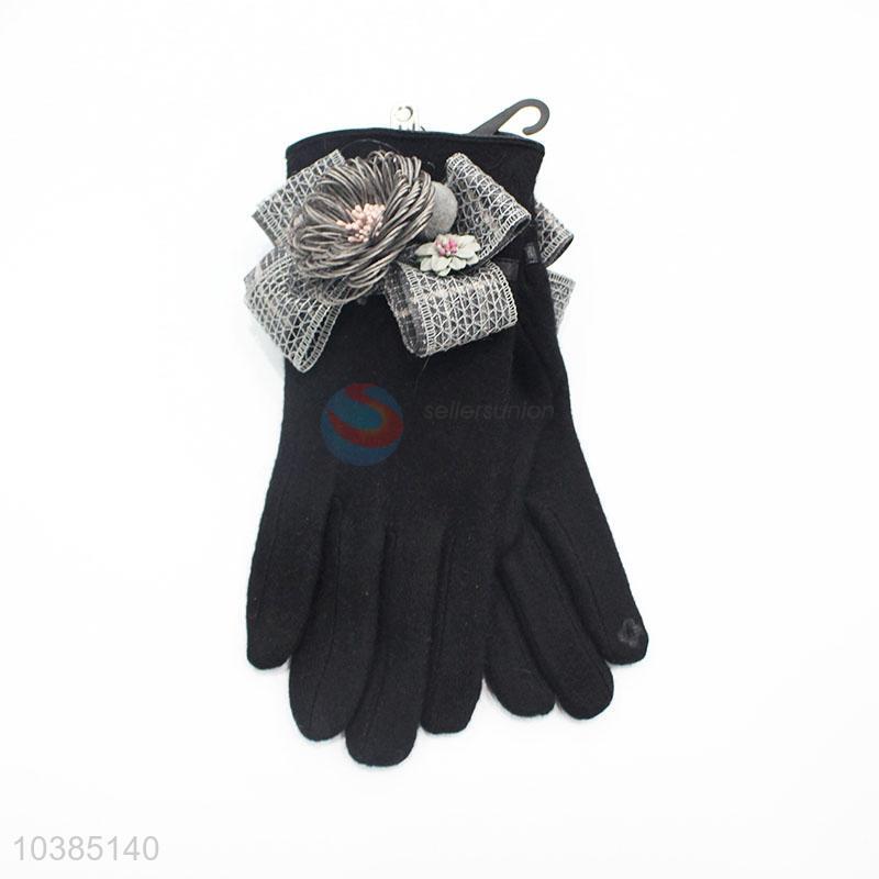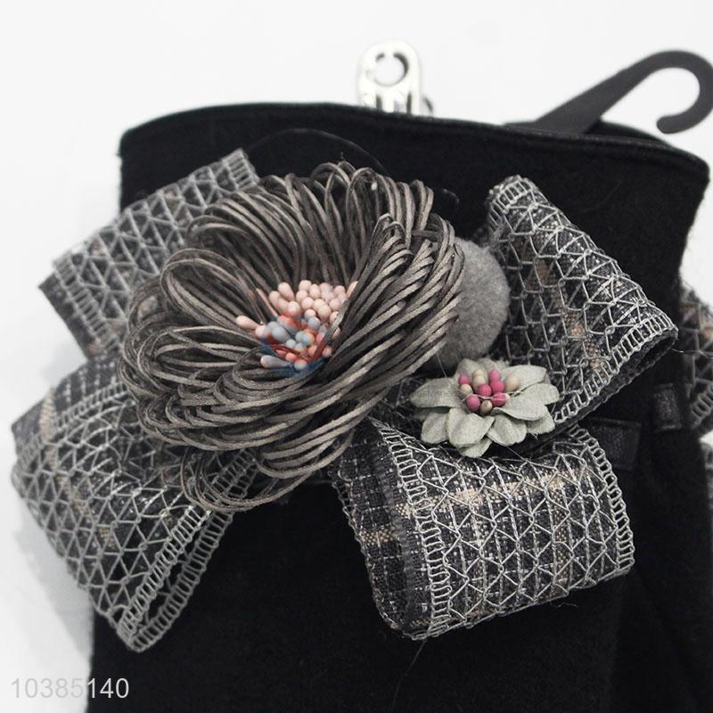 Women Winter Polyester Flower Deecorative Party Gloves