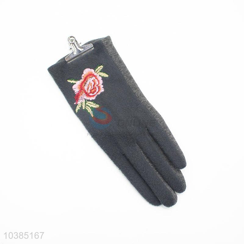 Women Winter Outdoor Sport Warm Embroidery Gloves