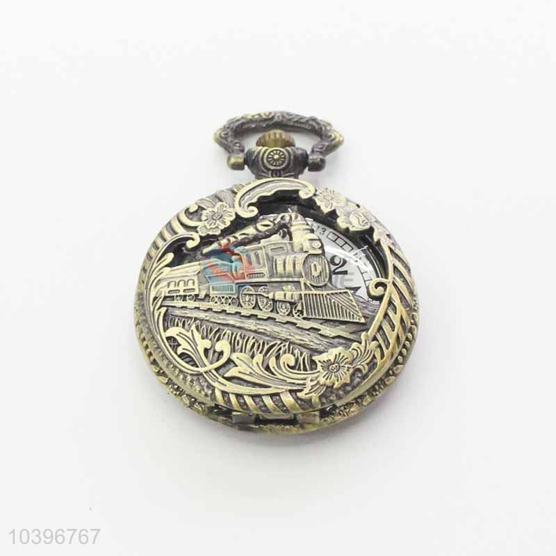 Train Quartz Movement Skeleton Pocket Watch