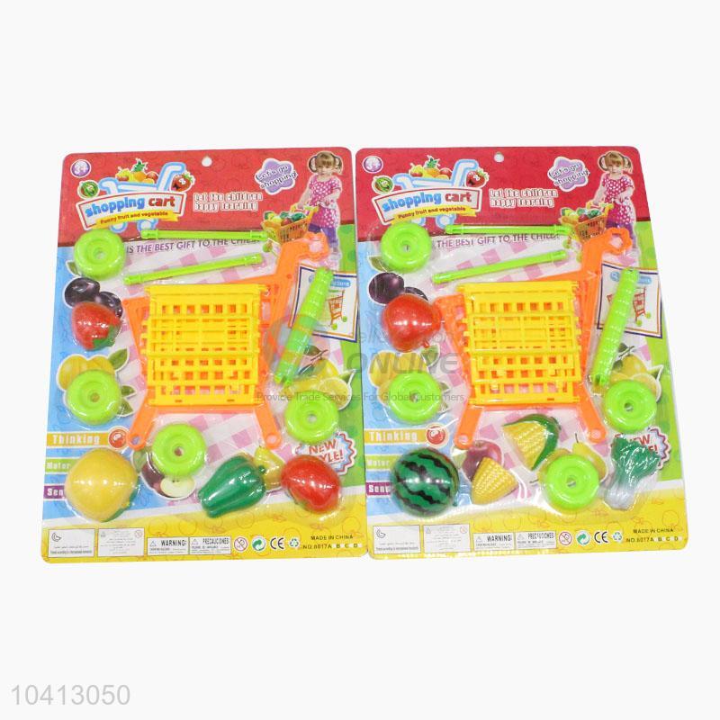 Kids Supermarket Mini Shopping Cart Toy with Fruits and Vegetables