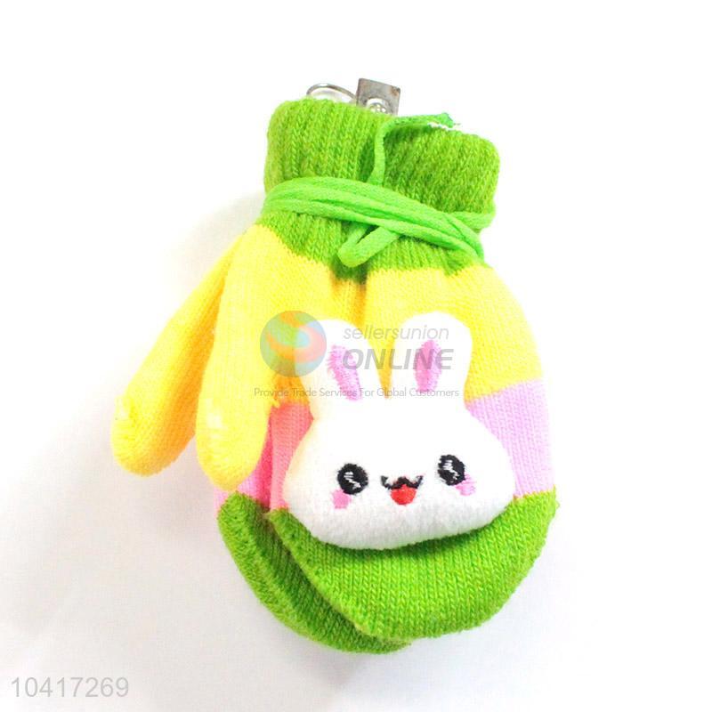 Factory promotional knitted rabbit kids gloves with rope