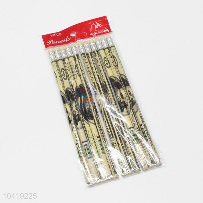 Dollar Pattern Wholesale HB Pencil 12Pcs