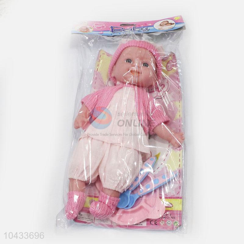 China Wholesale 14-inch Cotton 12 Sounds Boy Doll With Tableware for Kids