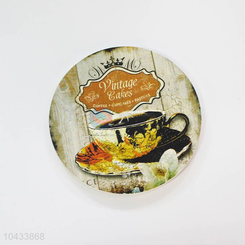 Flower Pattern Round Wood Cup Mat
