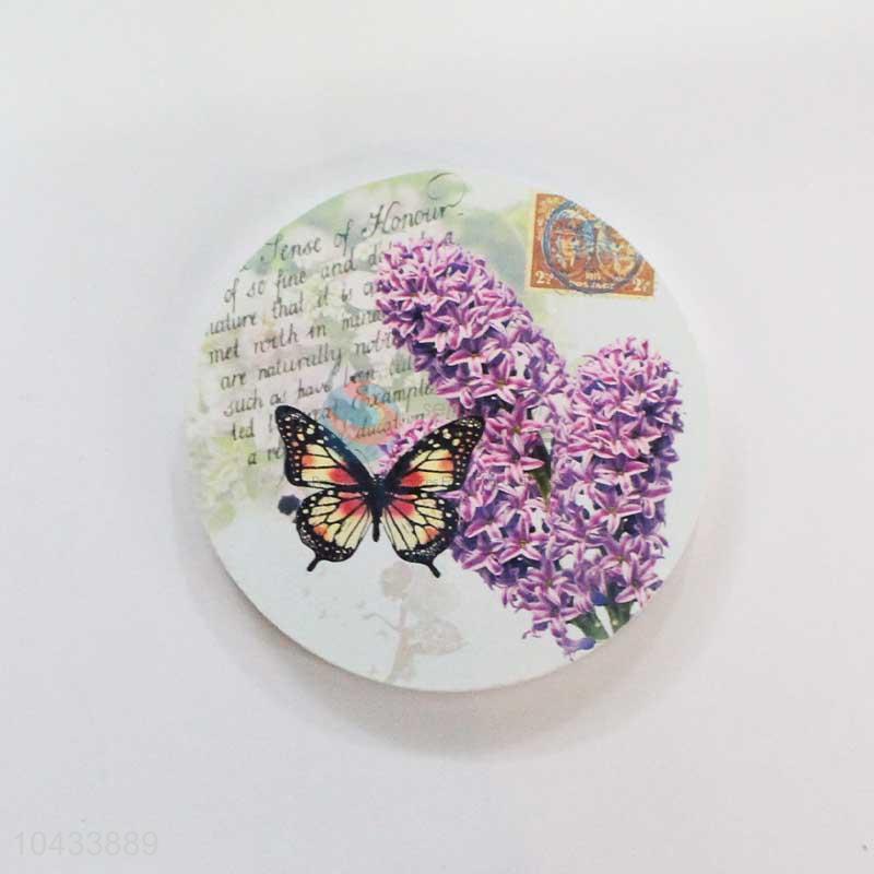 Flower Pattern Round Wood Cup Mat