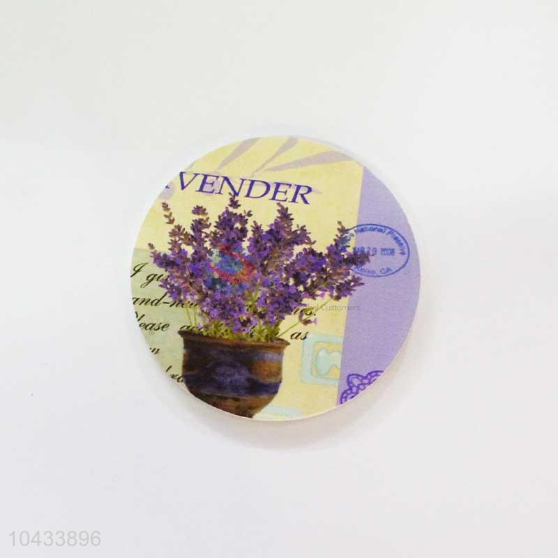 Flower Pattern Round Wood Cup Mat