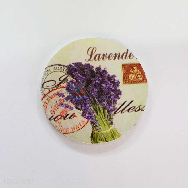 Flower Pattern Round Wood Cup Mat