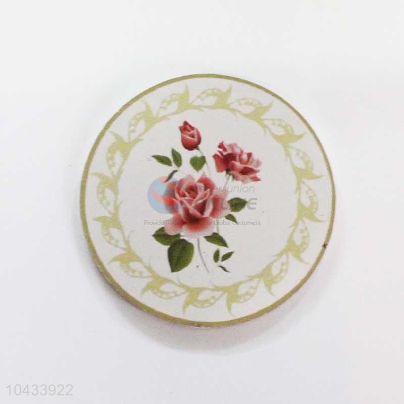 Flower Pattern Round Wood Cup Mat