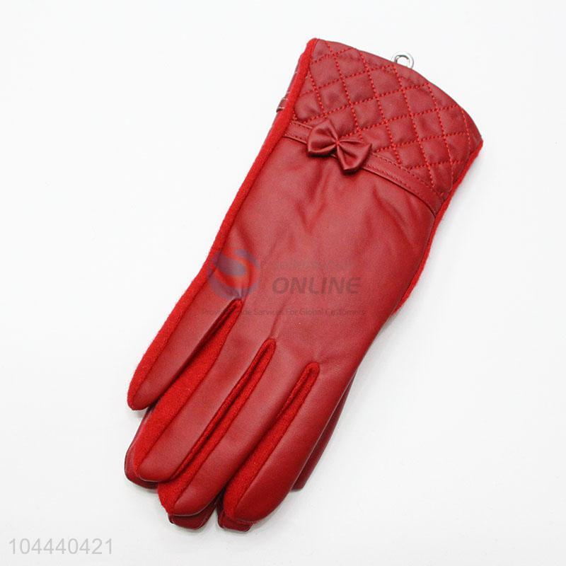 Durable Winter Women Warm Mitten Fashion PU Gloves