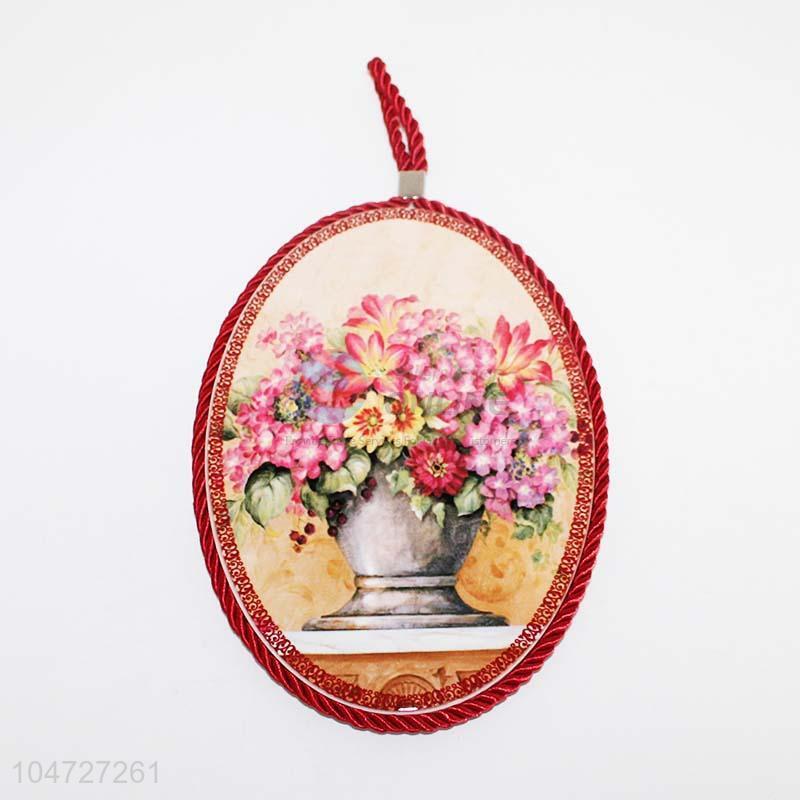 Flower Pattern Oval Shaped Ceramic Cork Pot Mat