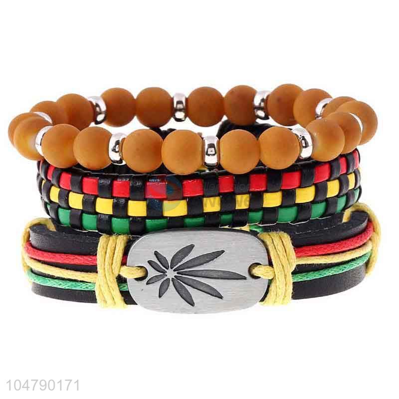 Cheap wholesale vintage braided leather bracelet set