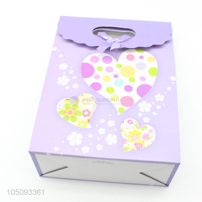 Nice Design Cheap Purple Color Heart Pattern Paper Handle Gift Bags