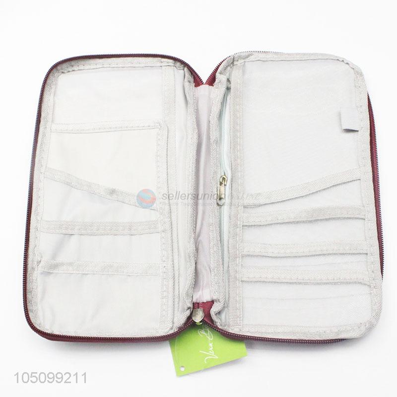 Custom Good Quality Wine Red Color Card Holder Pockets Storage Organizer