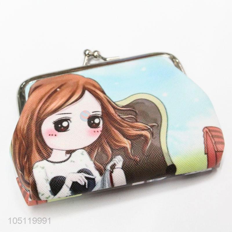 Cheap Price Cartoon Lovely Girl Printed Metal Clip PVC Coin Purse Wallet
