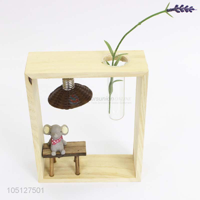 New Arrival Supply Wooden Ornament Hydroponic Transparent Glass Vase