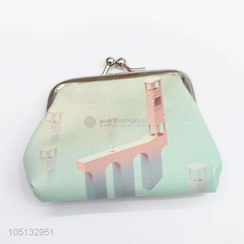 Factory Price Cute Cartoon Building Pattern PU Leather Coin Purse for Promotion