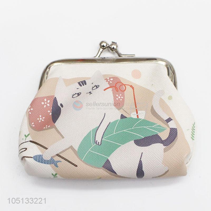 Cartoon Cat Printed Coin Purse Key Bag PU Leather Wallet Gift Coin Pouch