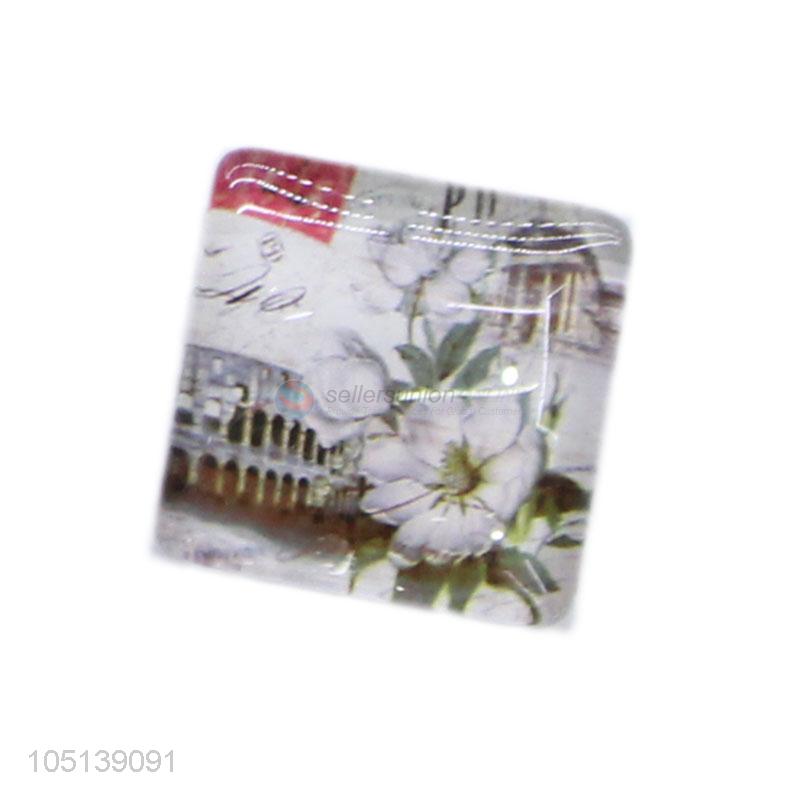 Manufacturer directly supply delicate square flower pattern glass fridge magnet