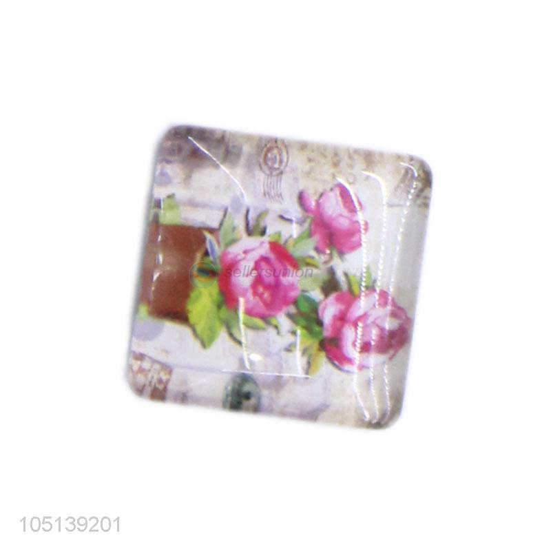Most popular delicate square flower pattern glass fridge magnet