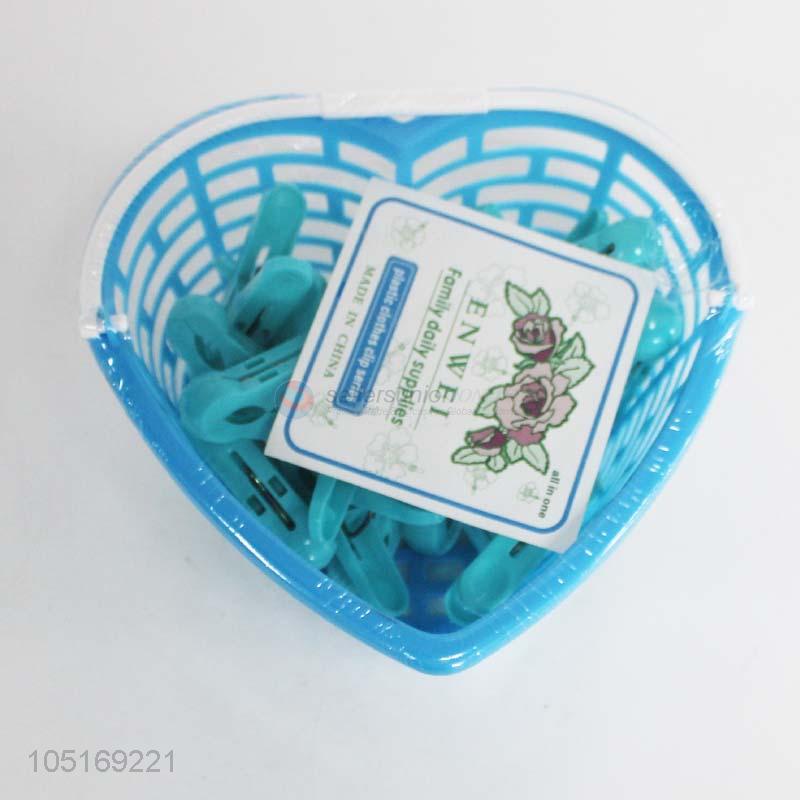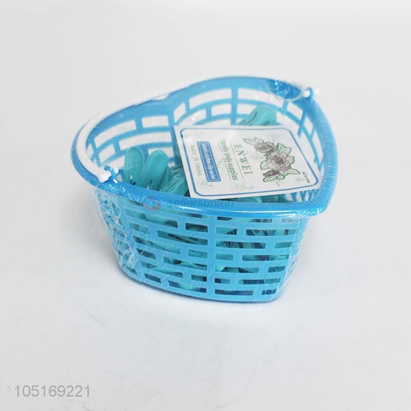 Reasy sale 24pcs plastic clothes clips with basket