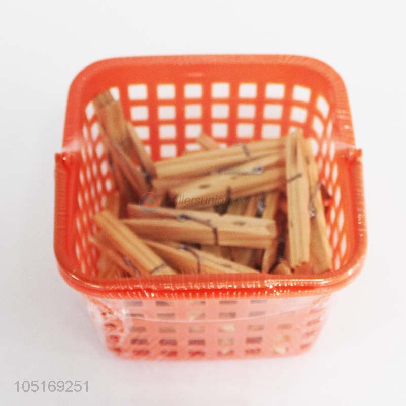 Hot sale 30pcs bamboo clothes clips with plastic basket