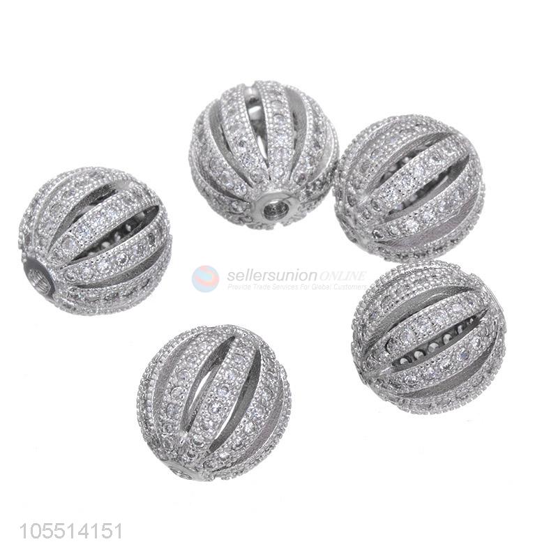 Popular Ball Shape Bangle Hole Spacer Bead Inlay Zircon Bracelet Beads