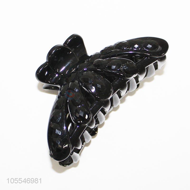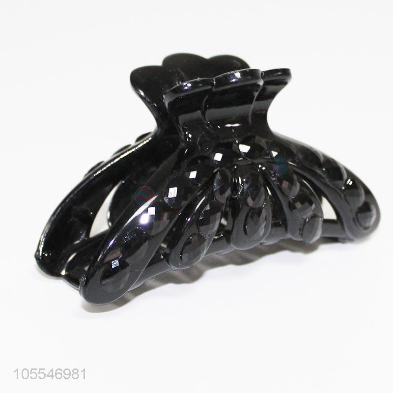 Professional factory black plastic women hairpin/claw clip with stones