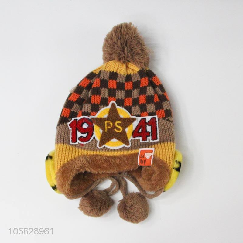 Hot Sale Cute Knitted Earmuffs Hat For Litter Boy