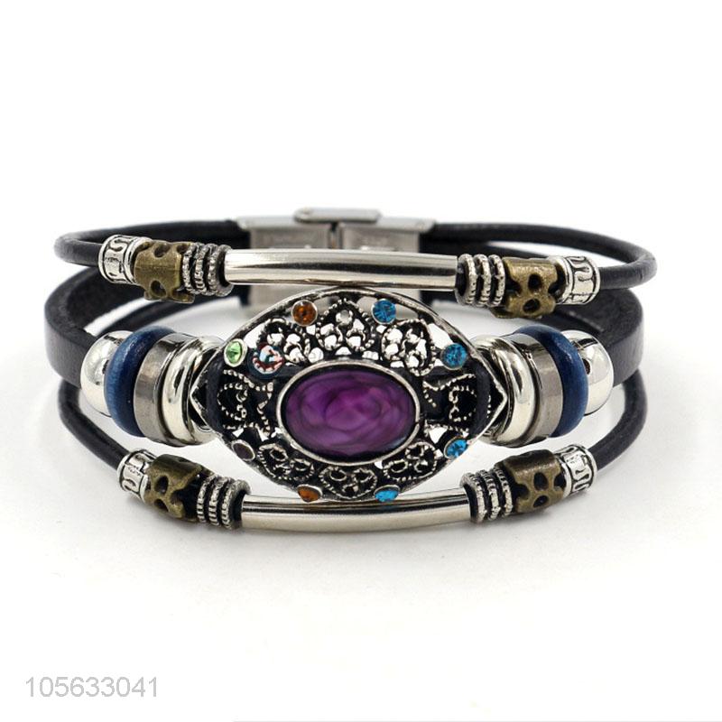 Direct factory supply retro punk men leather bracelet alloy charms bracelet