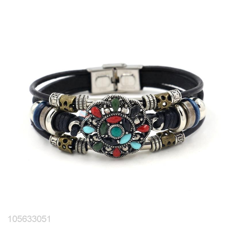 Most popular multilayer leather braid bracelet retro mens bracelets