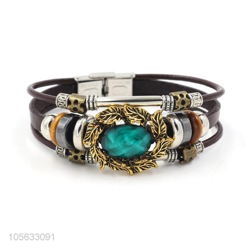 Customized retro leather braided bracelet charms bracelets for men