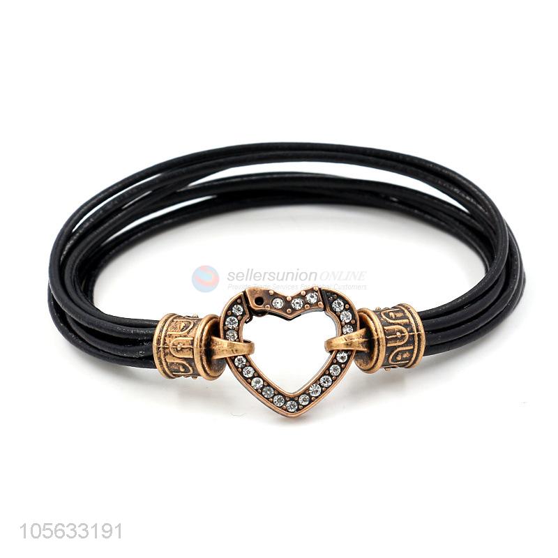 Super quality retro leather bracelet heart charms bracelets for men