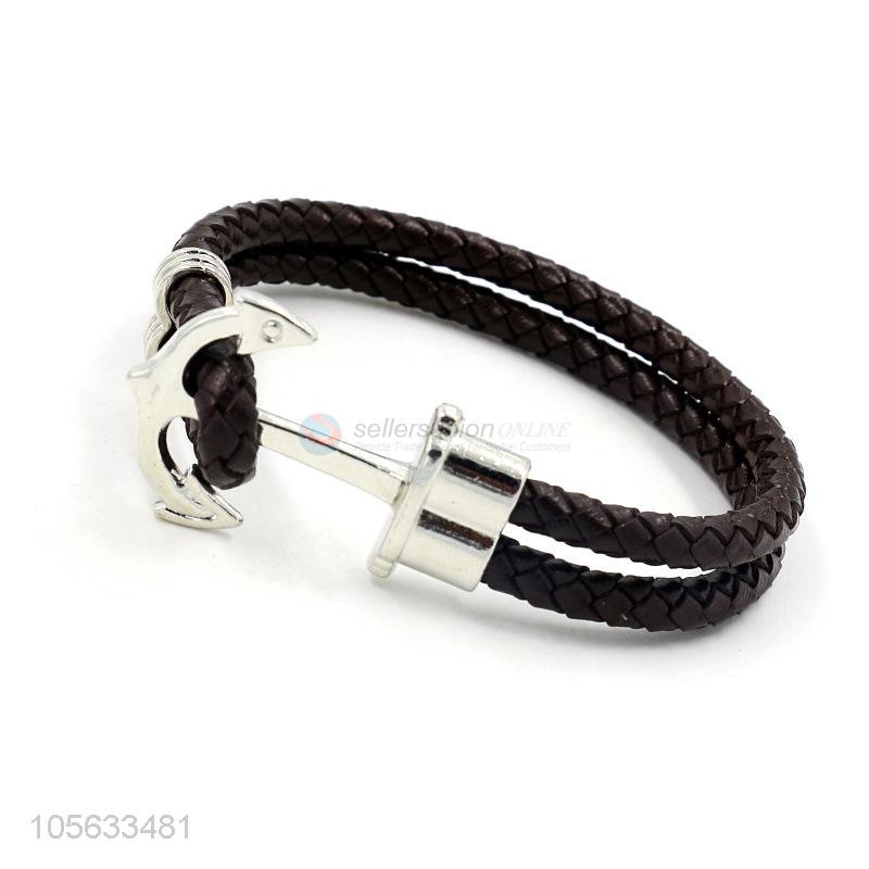 Factory sales mens favor handmade retro braided leather anchor bracelet