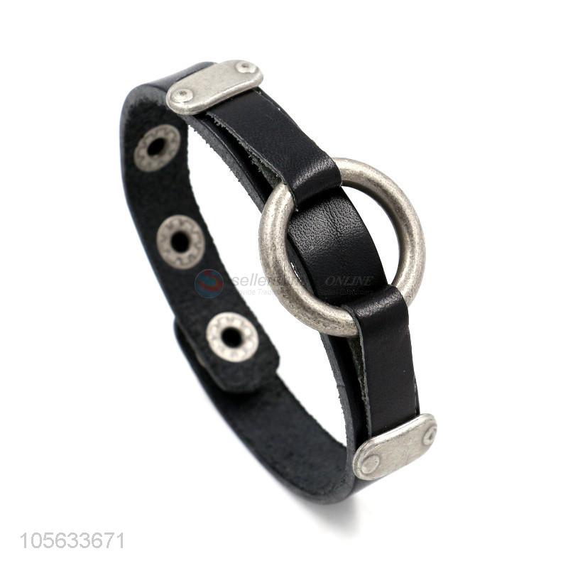 Made in China retro styles mens leather bracelets with circle charms